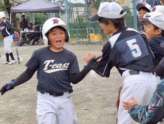 4回表、先頭4番打者くんが放った打球は後退したセンターのさらに頭上を越える特大のエンタイトルスリーベース!!これも緩い球をしっかり溜めて鋭く振り抜いて生まれた物凄い当たり。この号砲を皮切りに、ここからいつもの強力イースト打線がようやくお目覚め。6番打者くんにもライト前ヒットが飛び出し先発全員安打!そして唯一の3年生7番打者くんの放った5球目はライト線へ鋭く素晴らしい打球でエンタイトルツーベース!その後もこの回打者一巡の猛攻で6点チェンジ。